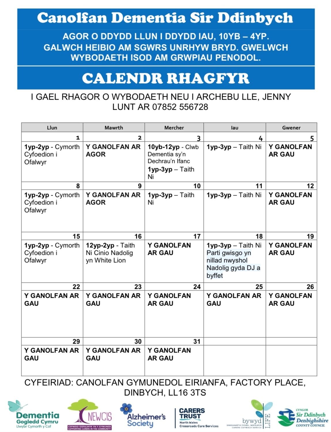 Canolfan Dementia Sir Ddinbych - Rhagfyr